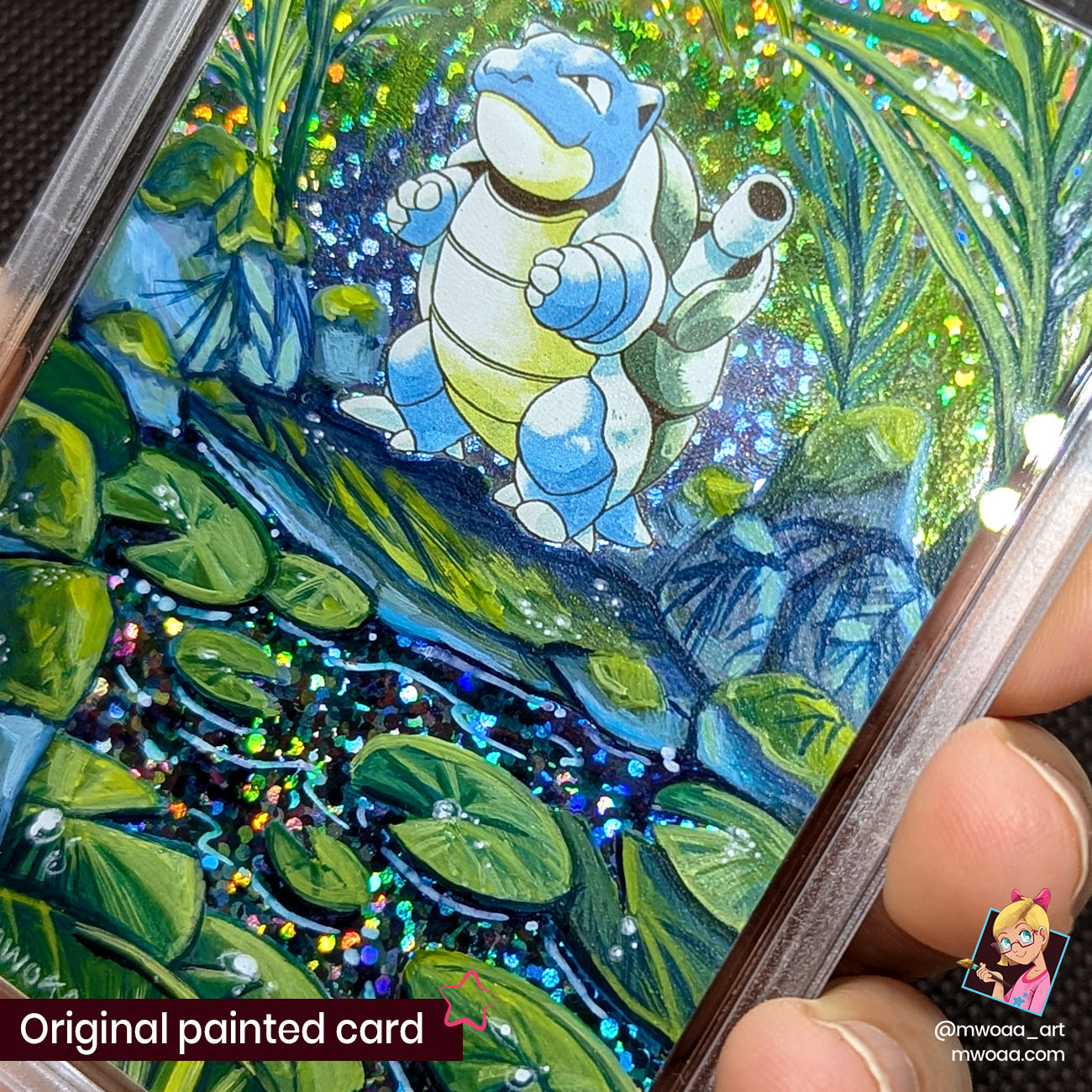 This painting have been made with acrylic painting directly applied onto an official Pokemon card, then varnished. I do take a lot of care on all of my creations but, in order for me to paint on (almost) any card, the ones I use are not always in mint condition. They can have some small defects or some small paint stains on the back.